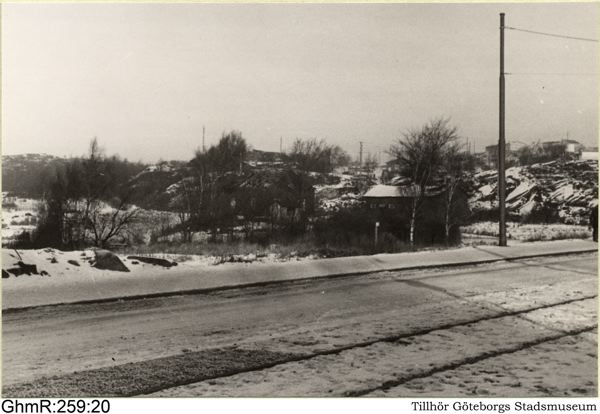 Från byggnadsverksamheten på Guldhedsområdet 1945. Terrängvy norrut från Guldhedsgatan strax intill Änggårdstorpet.