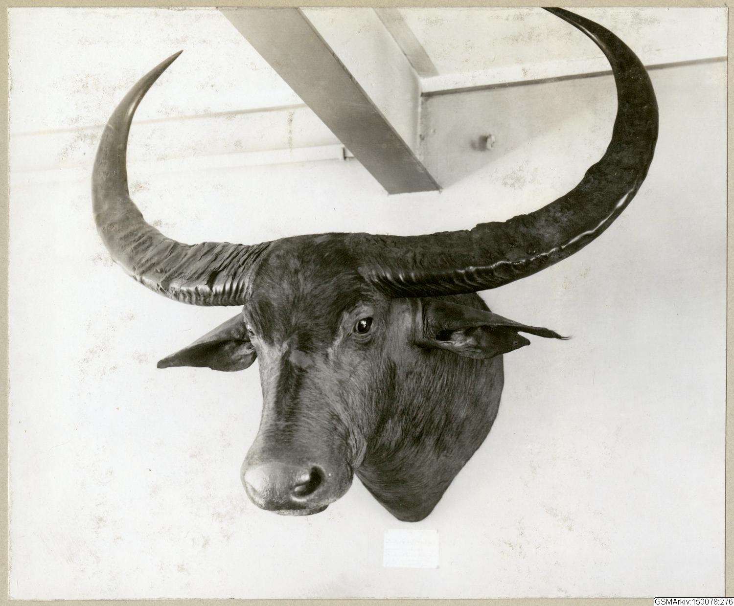 Huvud av Indisk vild buffel. foto t. på Gbgs. Museum. d. 15 Sept 1913