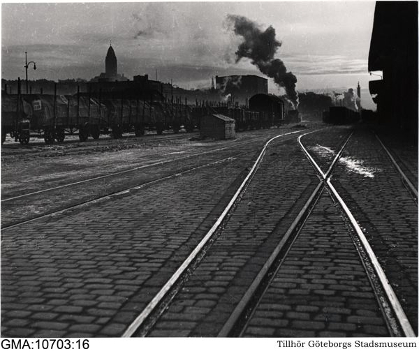 "Hamnbanan, Masthuggskajen, 1940-talet." Artur Nilsson foto. Attribueringen cit. efter fotografen.