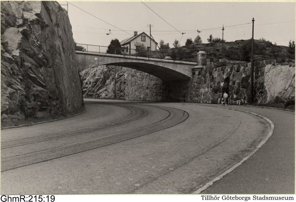 Guldhedsgatan, uppfart mot Egnahemsvägen viadukt. Sett från öster.