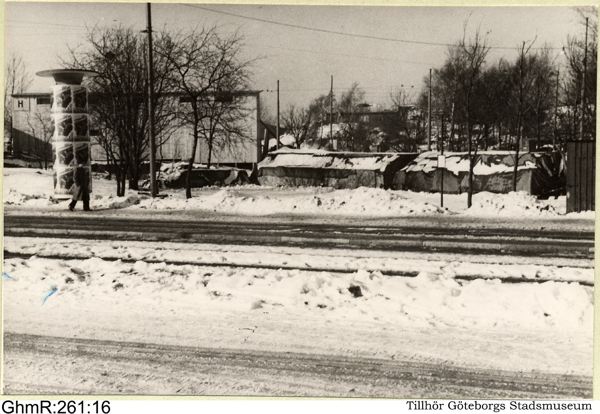 Guldhedsgatan vid ändstationen för spårvägslinjen Kviberg - Landala (linjen senare utsträckt till Sahlgrenska sjukhuset).