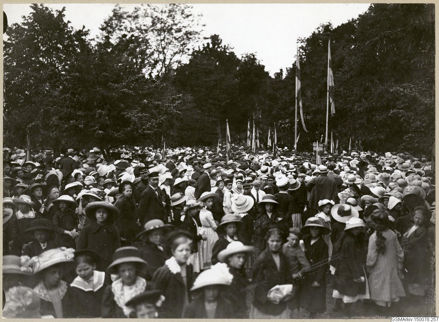 "Skolbarnen i Slottsskogen d. 6 Juni 1913." Svenska flaggans dag, bild ur Handelstidningen.
