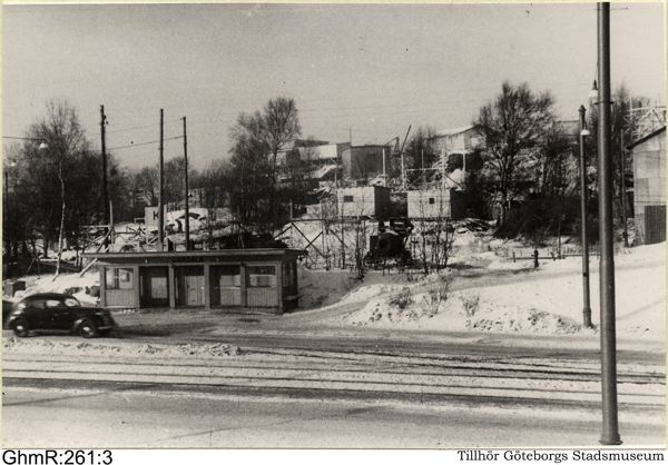 Guldhedsgatan vid ändstationen för spårvägslinjen Kviberg - Landala (linjen senare utsträckt till Sahlgrenska sjukhuset).