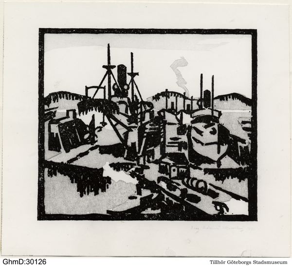 grafiskt blad, fotografi, bilder, tavla, ångare i hamn