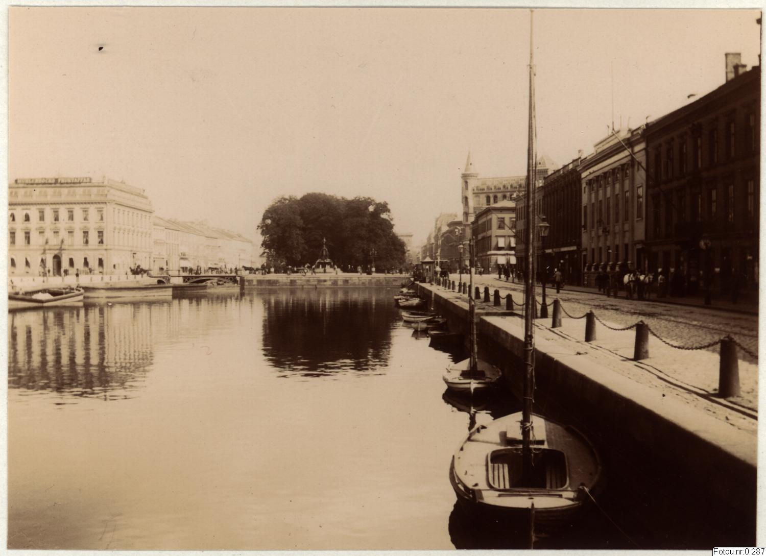 Sträckningsbild längs Stora Hamnkanalen och Södra Hamngatan mot öster. I fonden Brunnsparken.