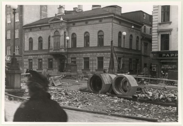 Märk gatuarbete efter Östra Hamnkanalens igenfyllning.