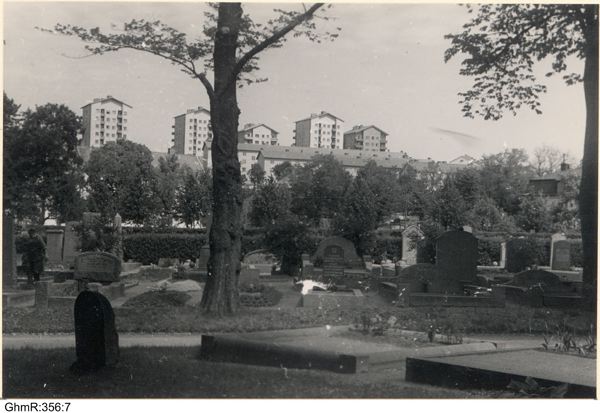 Motiv från Östra Begravningsplatsen. I fonden höghus på Strömmensberg.