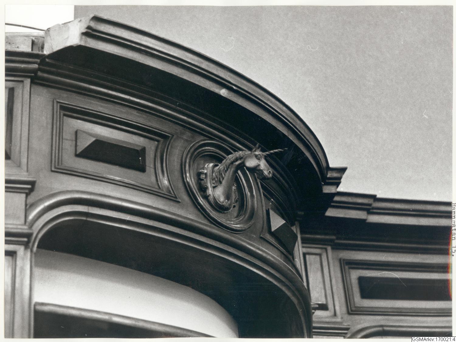 Inredningsdetalj från apotek Enhörningen. Fotot taget innan flytt ur lokalen 1968.