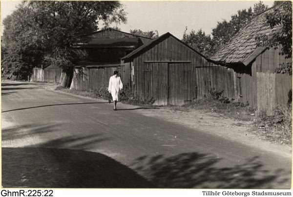 Hisingen: Lundbyområdet: Stillestorp. Ladugård och bodar sedda från Hallegatan.