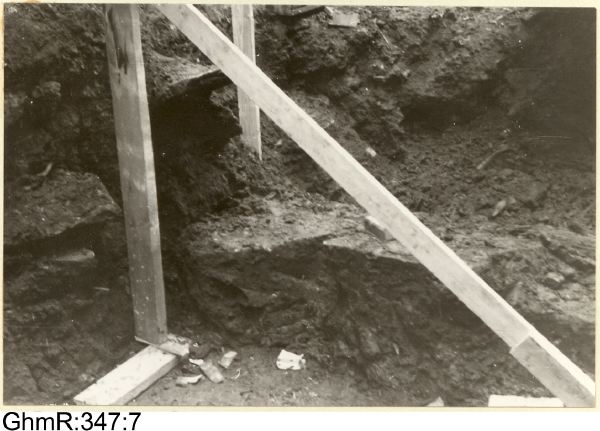 Schaktgrävning på mantalskontorets gård vid Köpmansgatan, för anläggande av ett transformatorhus.