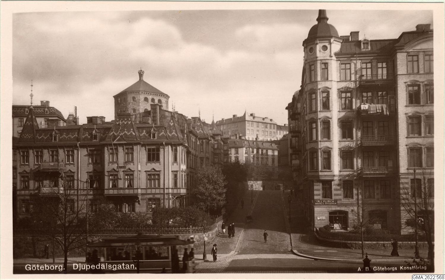 Djupedalsgatan mot öster vid korsningen Linnégatan. Göteborg