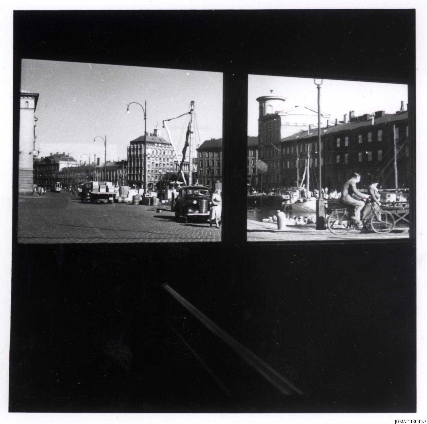 Sträckningsbild längs Norra Hamngatan och Stora Hamnkanalen mot öster. Bilden tagen från Packhusplatsen, i bildens mitt Lilla torget och Wijkska huset.