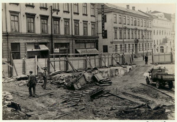 Grävningarna på Kommendantshusets tomt sedan detta rivits 1935. Rådhusgrävningarna 1935.