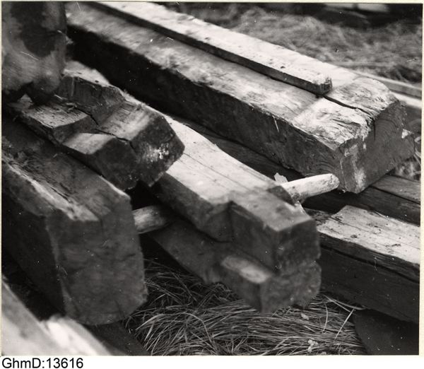 Timringssättet vilket förut har fotograferats av museet bl. a. i färg; det bestod av vertikala dubbelhaksknutar och låsknutar.
