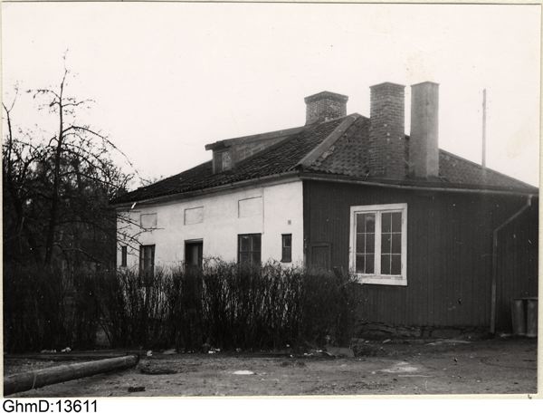 Boningshuset av tegel under sitt valmade tak och med tillbyggd smedja.