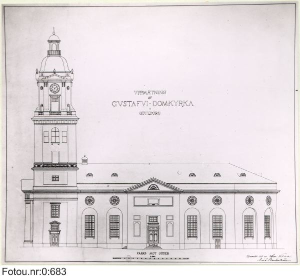 Domkyrkan, fasad mot söder. Uppmätningsritning.