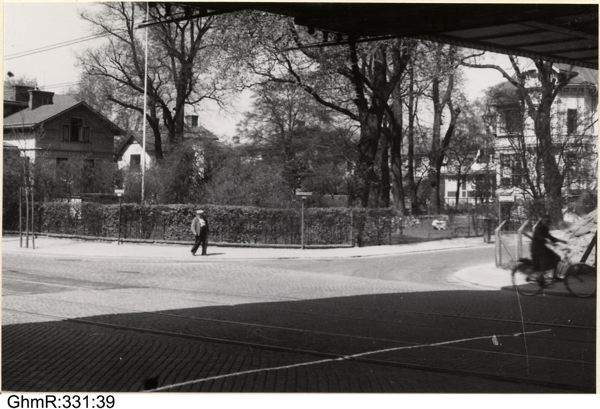 Södra Kustbanegatan, mynningen i Örgrytevägen - blick från järnvägsviadukten över den sistnämnda.