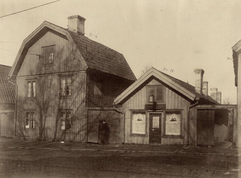 Fr.h. Karl Johansgatan 73 och del av 75. Lilla huset t.h. innehåller en frisersalong.