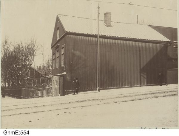 Gamla Varvsgatans östra sida mot norr, sedd från Karl Johansgatan. Närmast märkes skeppsbyggmästare Hübes hus. Längre bort mellan träden ses Kennedyska villan.