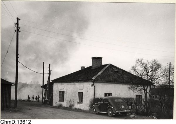 AB Göteborgs Hyrverks byggnader på fastigheten nr 68 i 12:e roten. Bilderna tagna i samband med avröjningen av byggnaderna enl. fastighetsnämndens protokoll av den 15 nov. 1955.