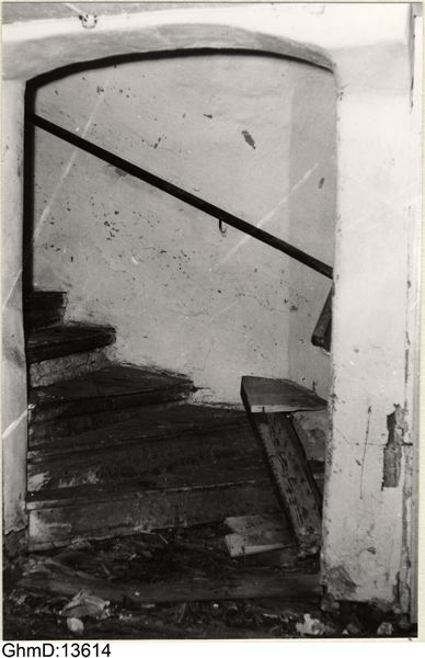 Uppgången till 2:a vån. i tegelbrukets gamla manbyggnad av trä.