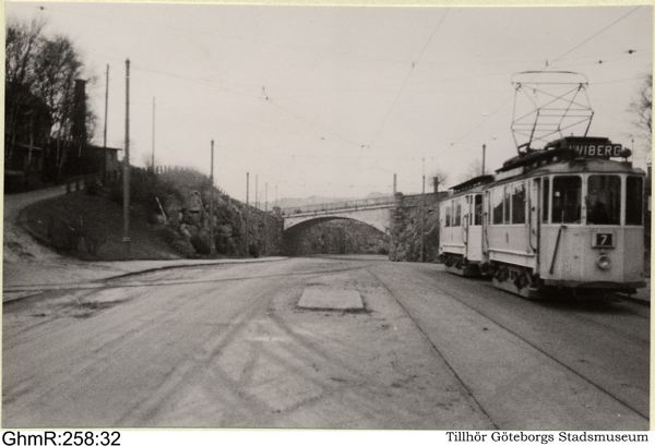 Guldhedsgatan, uppfart mot Egnahemsvägen viadukt. Sett från öster.