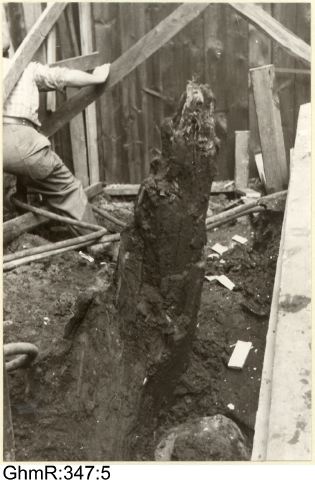 Schaktgrävning på mantalskontorets gård vid Köpmansgatan, för anläggande av ett transformatorhus.