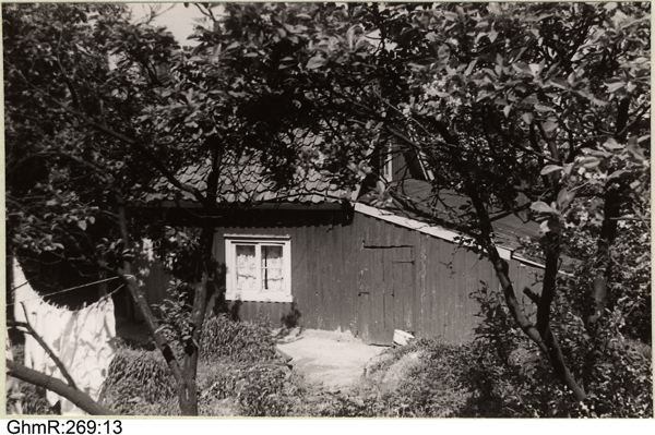 Vy från sydost - söderfasad (detalj), gavel åt öster (med bodutbyggnad).
