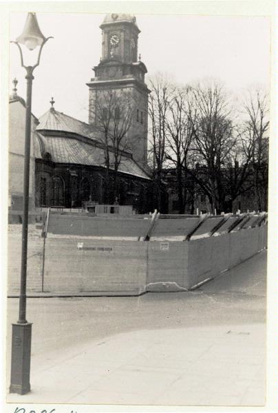 Gustav Adolfs torg. Avplankning kring tomten för Kommendantshuset, sedan detta rivits.