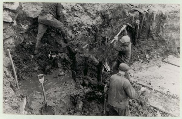Grävningarna på Kommendantshusets tomt sedan detta rivits 1935. Rådhusgrävningarna 1935.