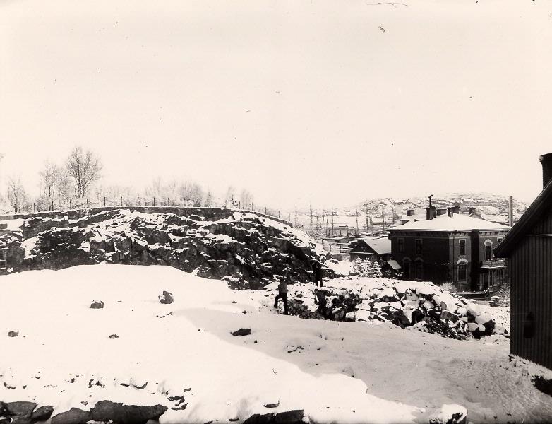 Del av Karl Johansgatan mot öster från Allmänna Vägens västra mynning. I bildens t. h. nuvarande Nordgården.