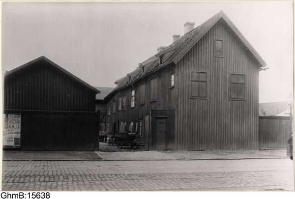 Det hus i vilket donatorn Charles Felix Lindberg föddes. Omfoto (dec. 1955) efter odaterat foto (ca 1910?) av Axel Hartman.