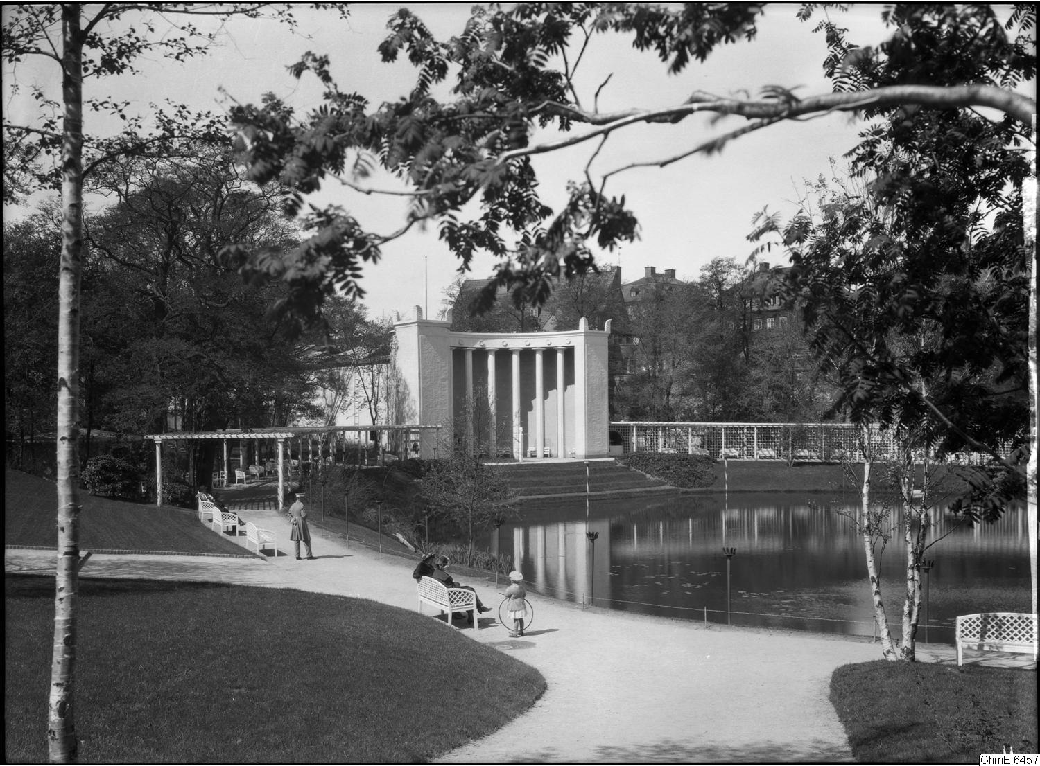 Utställningshallen för Idrott med fasad mot Näckrosdammens vänstra sida.