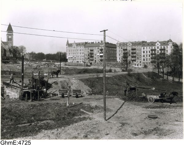 Söder om Engelbrektsgatan. Upplag och arbetsplats för gatukontoret.