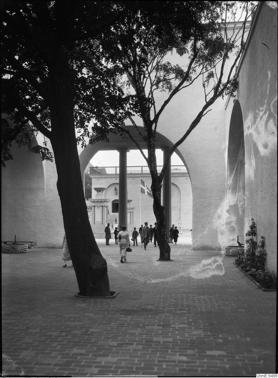 Entrégården eller Lilla Gården vid entren till utställningsområdet. I fonden Götaplatsen och Konsthallen