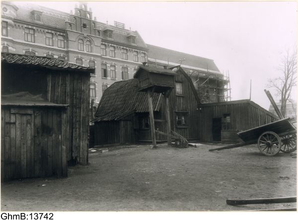 Bild från gården till smedjan/gjuteriet där smeden C H Andersson hade sin verksamhet fram till 1902. Huset rivs 1902