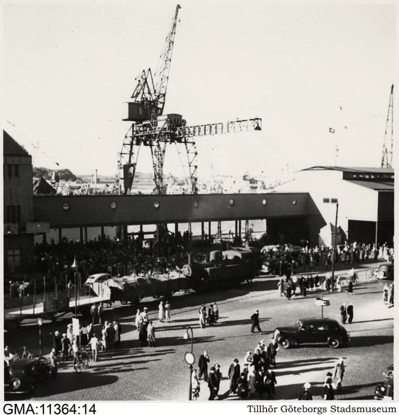 Göteborgs hamn: Stigbergskajen. Gången mellan Betongskjulet och skjul 34. Foto från slutet av 1940-talet.