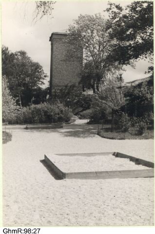 Tegeltornet vid Bergsgatan samt parti av lekplats vid Skansbergets fot, ung. mitt emot Bergsgatan nr. 10 o.a. fastigheter.