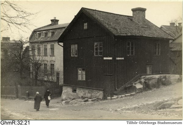 Majornas 1 rote, nr 228 vid Hellstedtsplatsen. Södra fasaden, västra gaveln. Till vänster går Timmermansgatan ner.