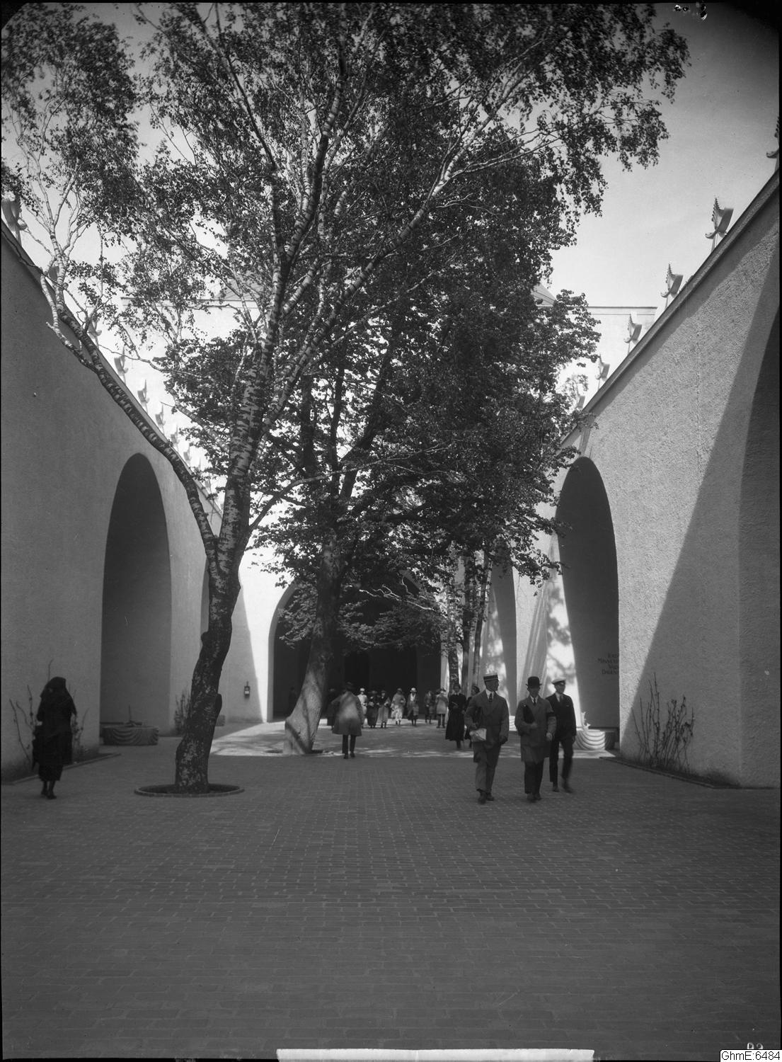 Vid Entrégården/ Lilla gården riktning mot utställningsområdet.