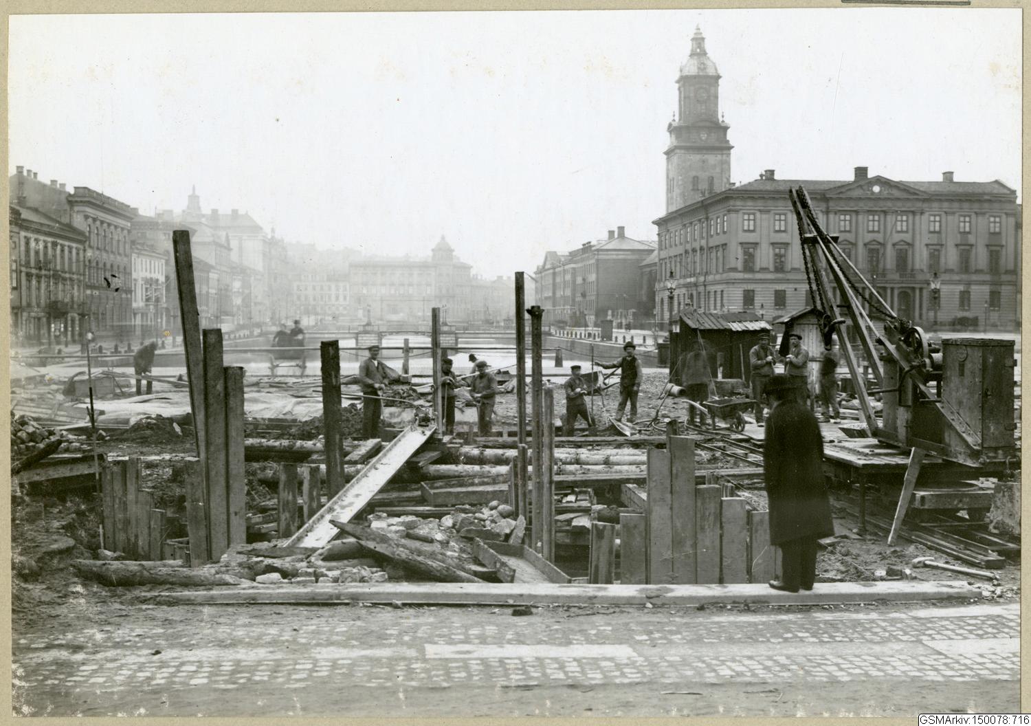 Arbetet i Brunnsparken d. 9 April 1914