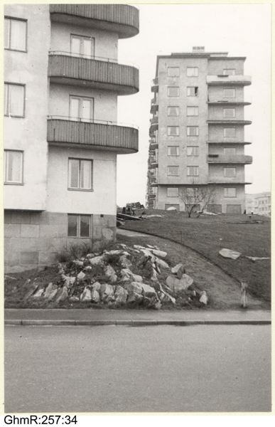 Örnehufvudsgatan 17 (t.h.), sydlig gavel. T.v. liten del av Gibraltargatan 68 x Eklandagatan.