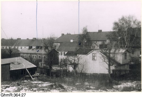 Fr. vänster Räntmästaregatan 3, 5 (vid den vänstra pilen), 7 (vid den högra pilen) och 9.