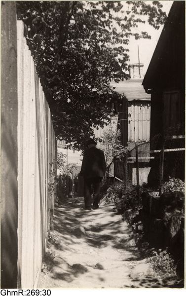 Nedgång åt Koopmansgatan; närmast till höger Majornas 3 rote, nr 60 A, därbakom, med elektriska kontakter, nr 70 A i samma rote.
