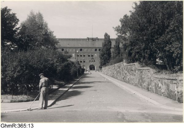 Blick från Läraregatan över Röhssgatan mot Hvitfeldtska läroverket.