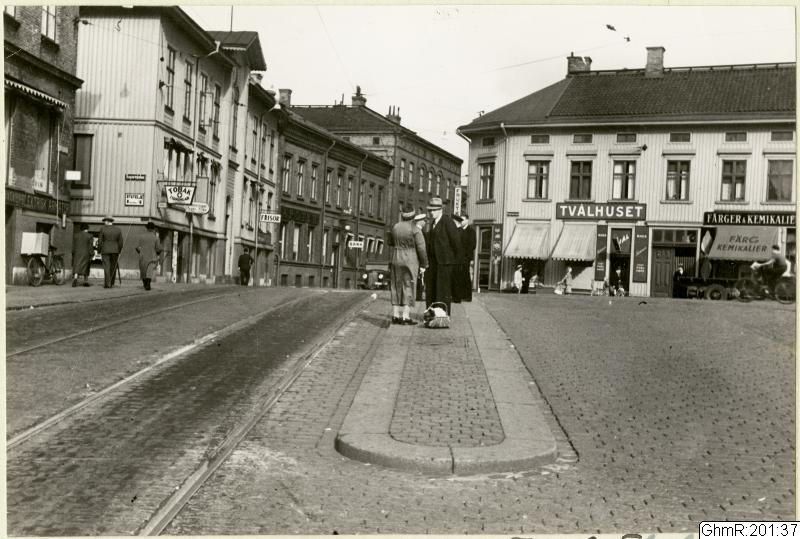 Svartvitt foto mot Stigbergstorget och Bangatan går in till höger
