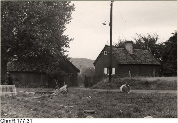 Soldattorpet Högatorp, fasad mot väster, gavel mot norr, jämte tillhörande ekonomibyggnad.