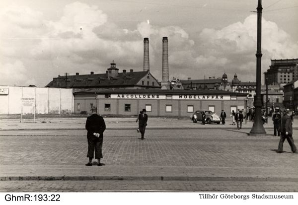 utsikt från Järntorget mot Brända Tomten, gasverket och frilagerbyggnaden.