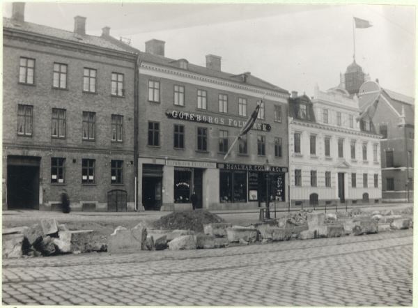 Bilden tagen efter 1903 då Västra Hamngatan 19 byggts om och fått butikslokaler i bottenvåningen.