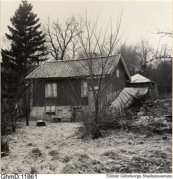 Stuga om förstu, kök och två kamrar uppförda av plank panelad och rödmålad. Bryggstuga i den av steb murade källargrunden.